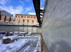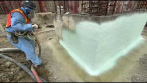 POLYFUSION represents a technically advanced solution for blindside waterproofing, engineered to surpass traditional sheet membranes, bentonite boards, and multi-component systems by delivering a fully monolithic, chemically bonded assembly in a single, precision-controlled application. In blindside conditions—where access is constrained and hydrostatic pressures are high—the closed-cell polyurethane spray foam is applied directly against the shoring or excavation face, achieving complete substrate encapsulation, void fill, and structural adhesion.
