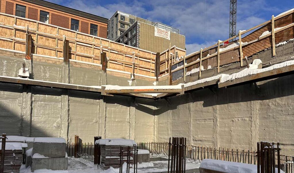 Gallery Portfolio Poly FusionBLIND-SIDE WATERPROOFING ELEVATOR HOISTWAYSThermal Coatings Radon Defence